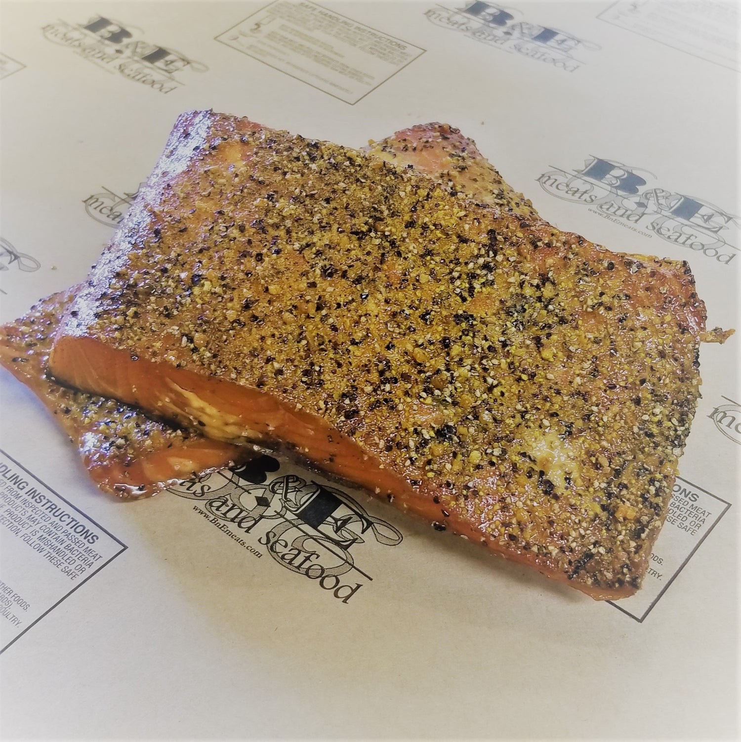 Alder Smoked Atlantic Salmon seasoned with B&E Lemon Pepper Seasoning.