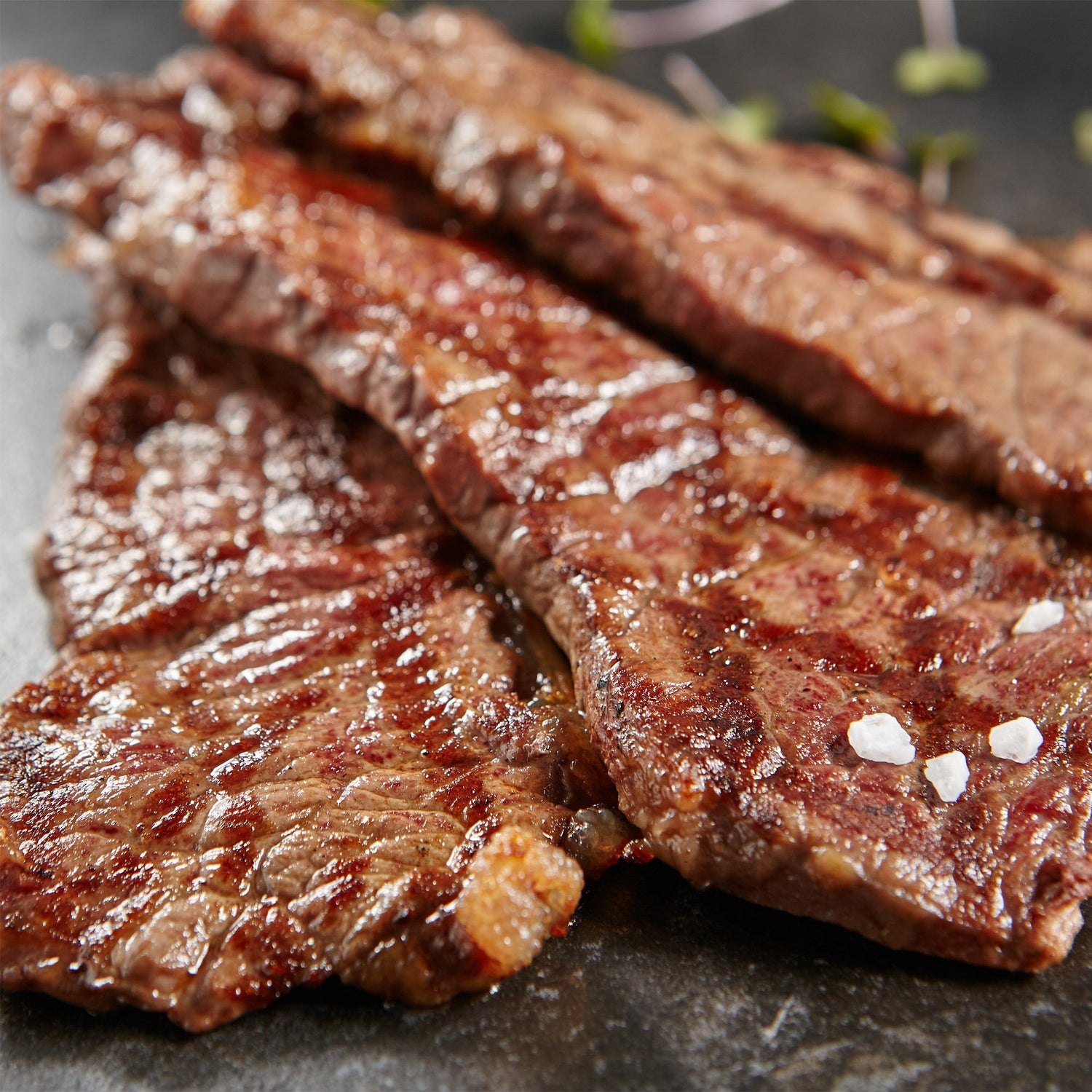 Beef slice thin and marinated in our own Kalbi marinade. Great on the Barbecue, 6 minutes a side, or under the broiler. Keep an eye on it while cooking so you don't burn them. Kalbi marinade is made of fresh Ginger, garlic,green onions, soy sauce, vegetable oil, sesame oil, red pepper flakes, black pepper and sugar. Sold raw and by the pound.