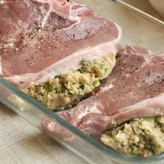 All Natural Pork Chop Stuffed with our traditional home made stuffing.